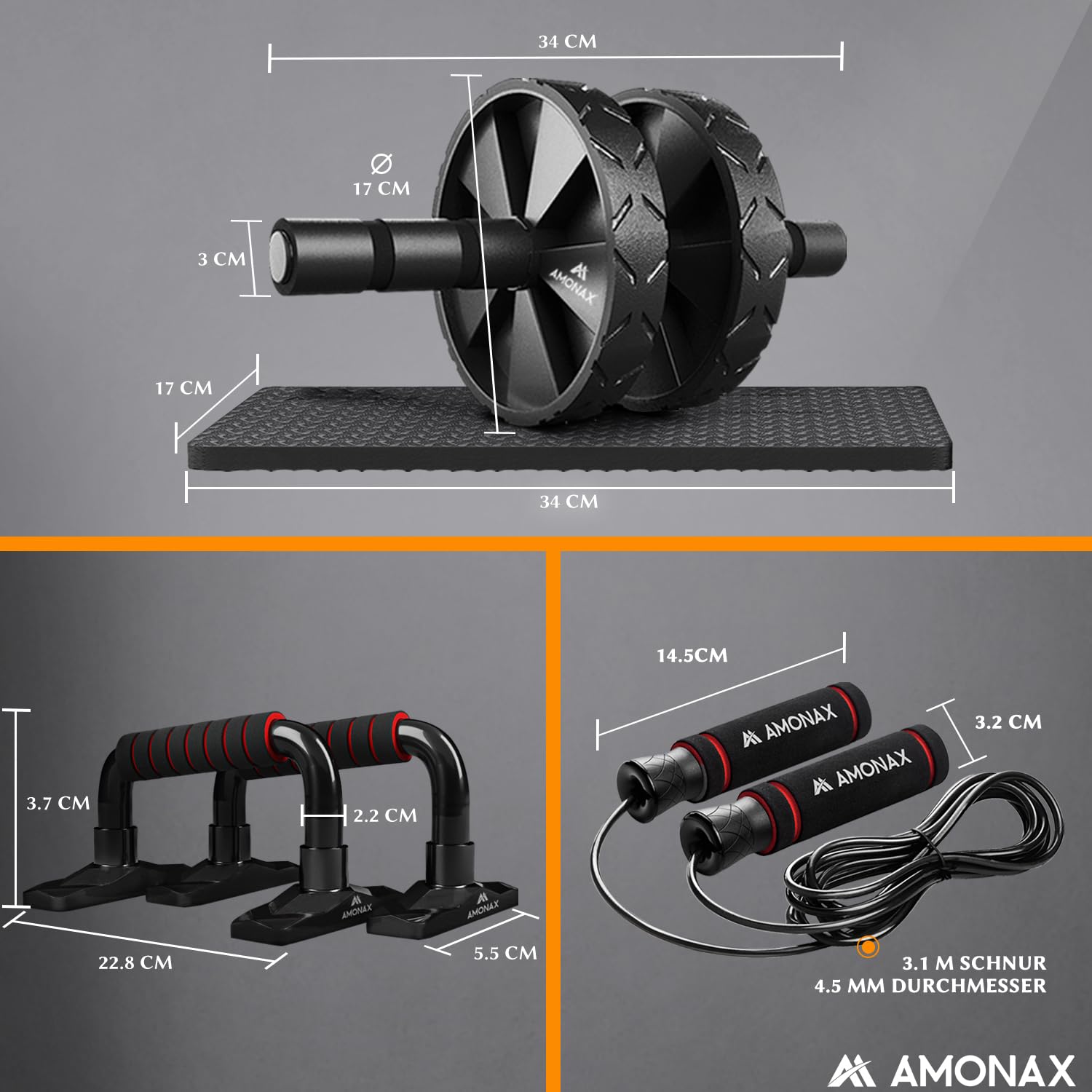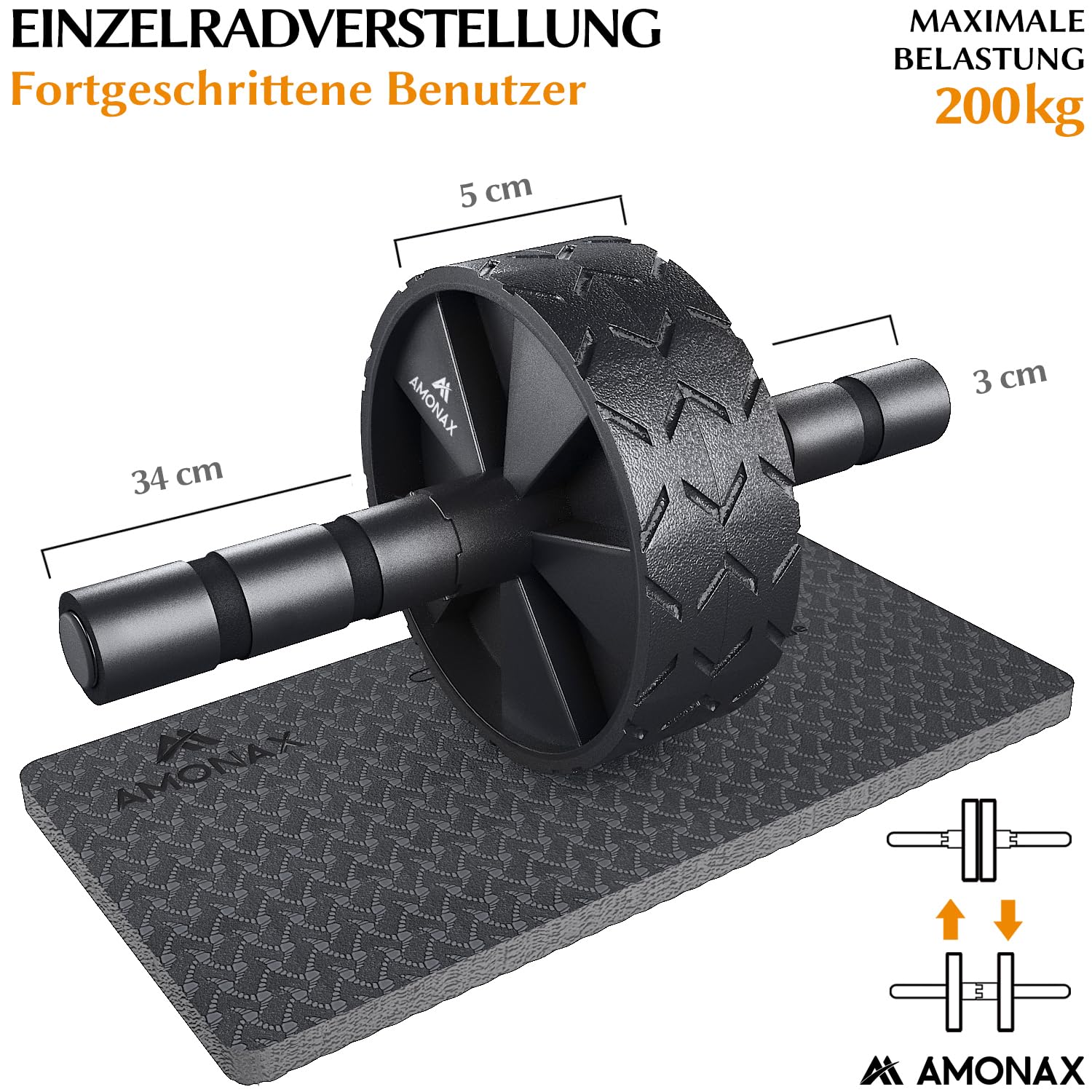 Bauchmuskeltrainer AB Roller 2-in-1 mit Kniematte - bis 150kg