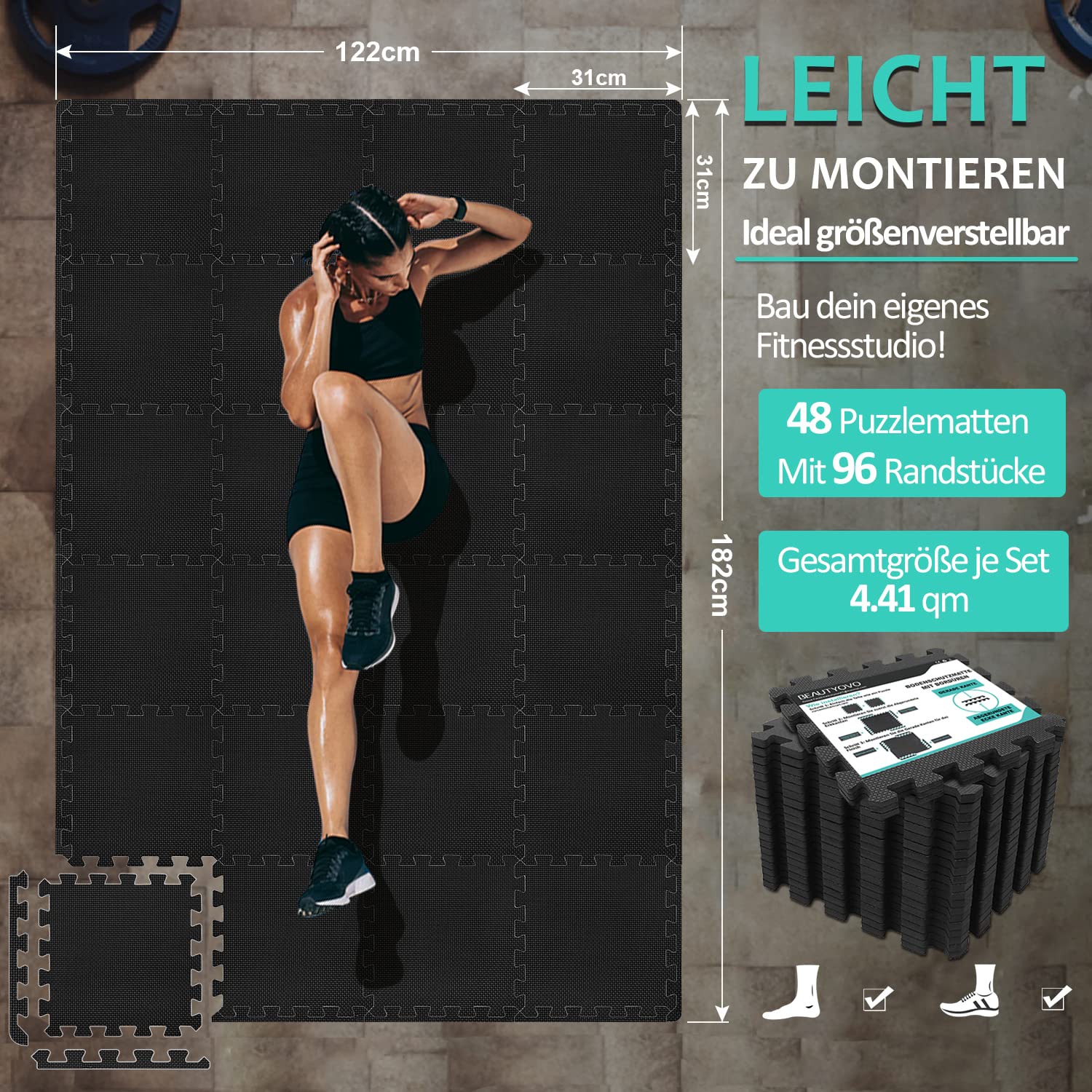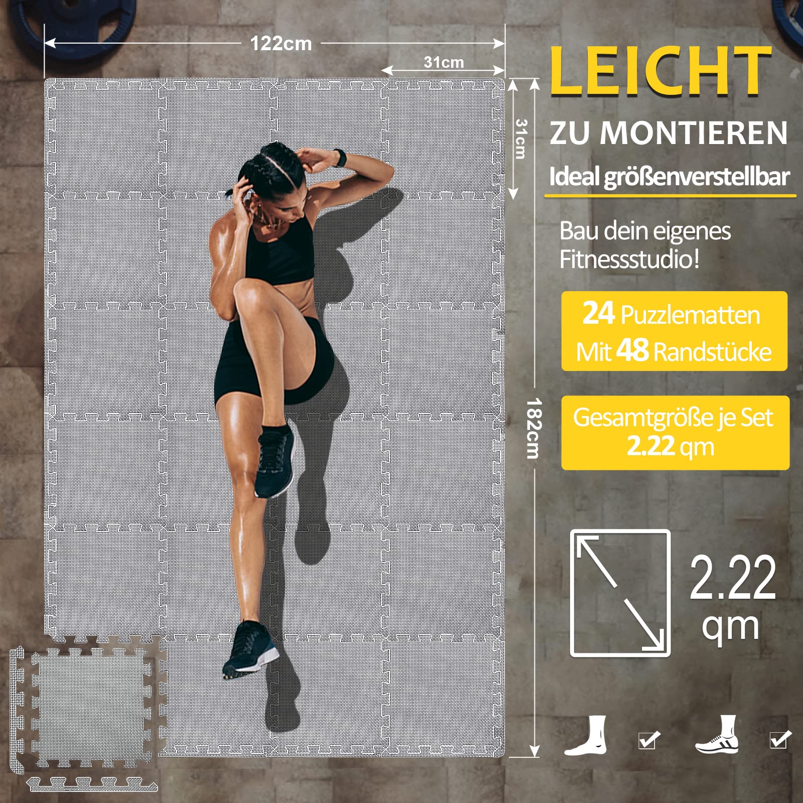 Bodenschutzmatten Fitness Puzzlematten 31x31cm - EVA Schutzmatte
