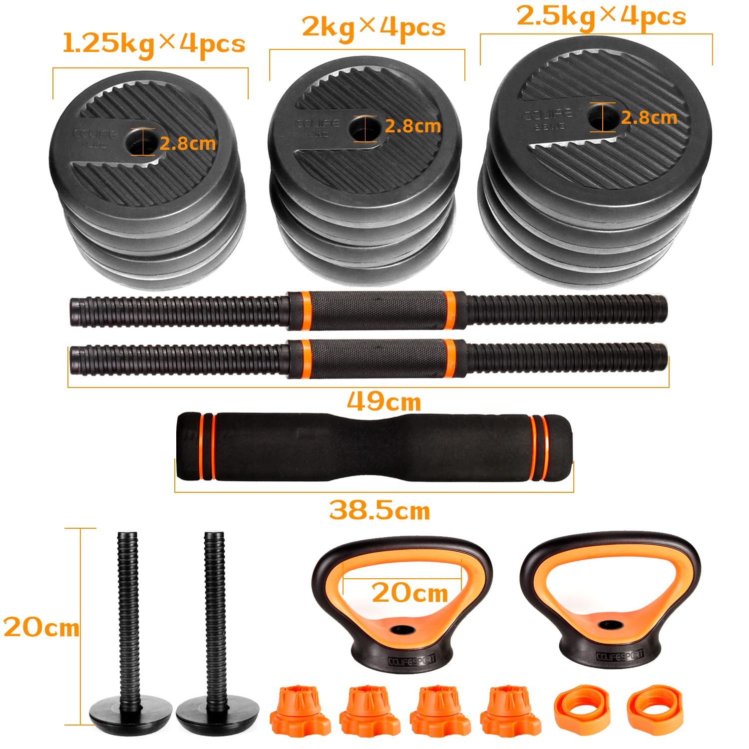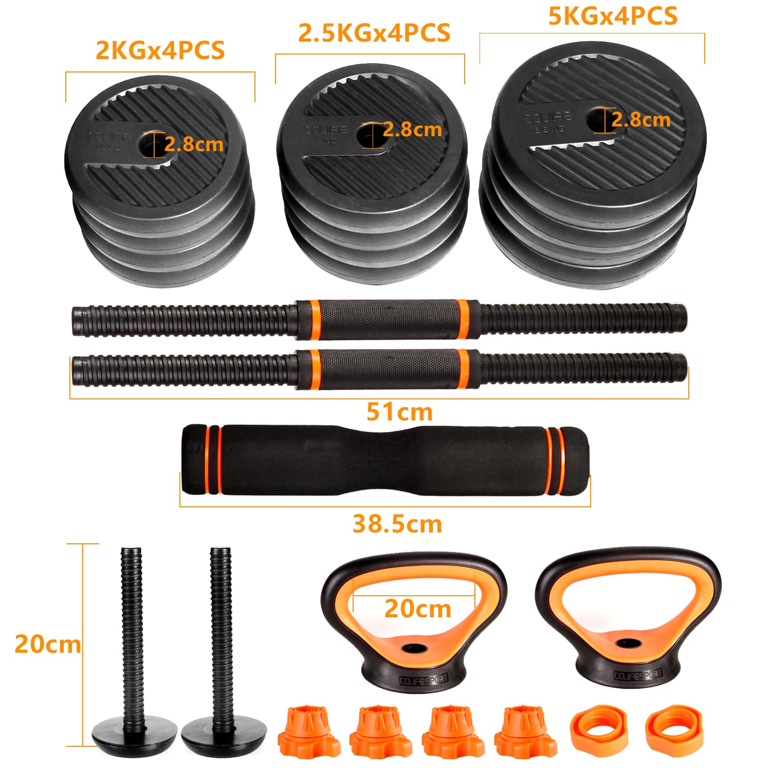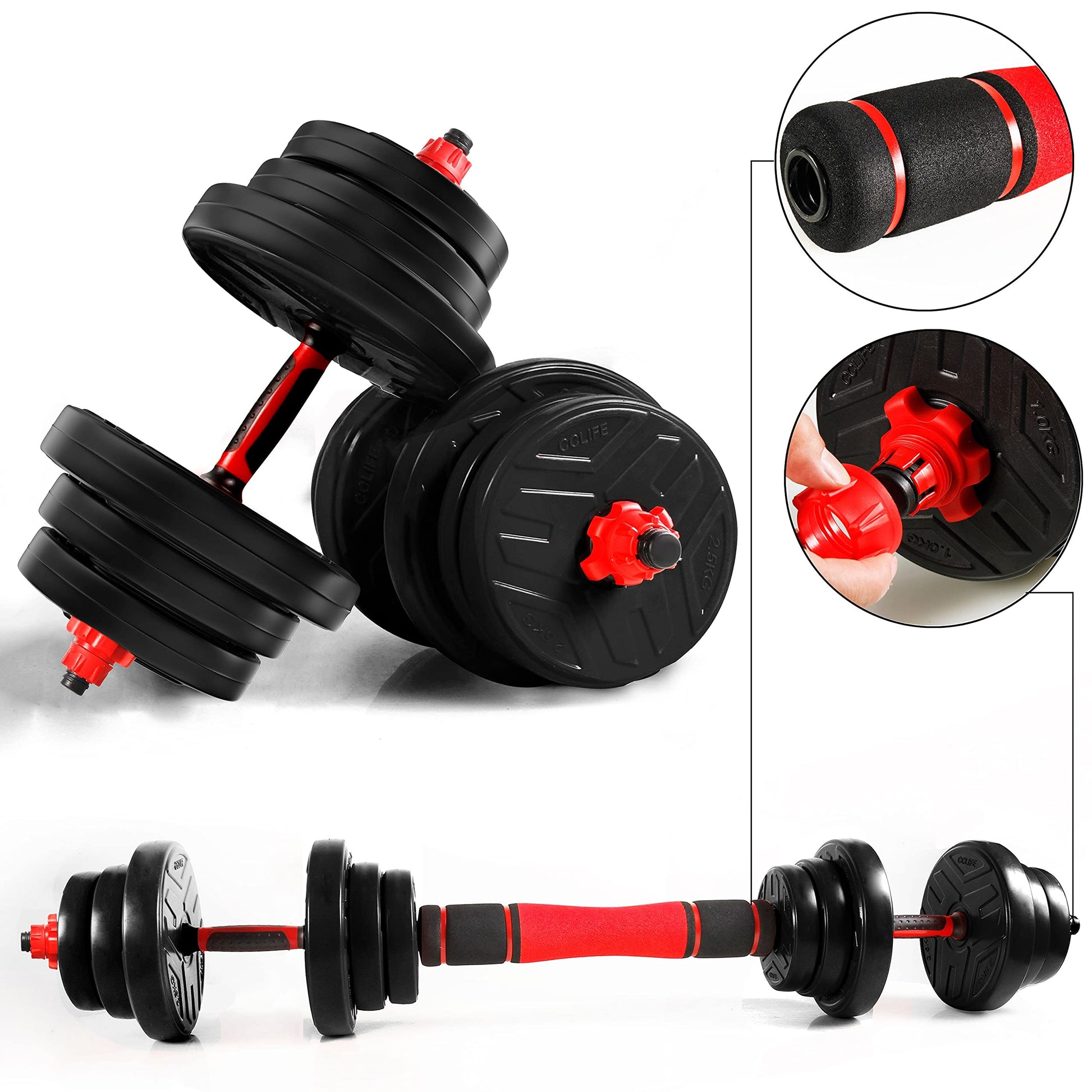 CCLIFE Hanteln Set aus 2 Hanteln Einstellbares Hantelset Professionelle Hantel mit verbindendem Stahlrohr-Gewichten