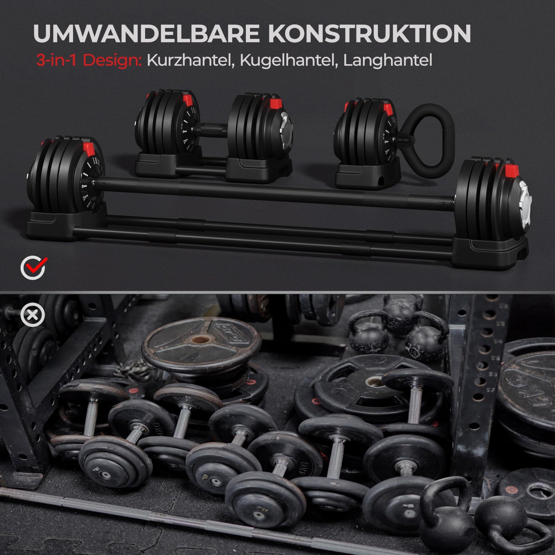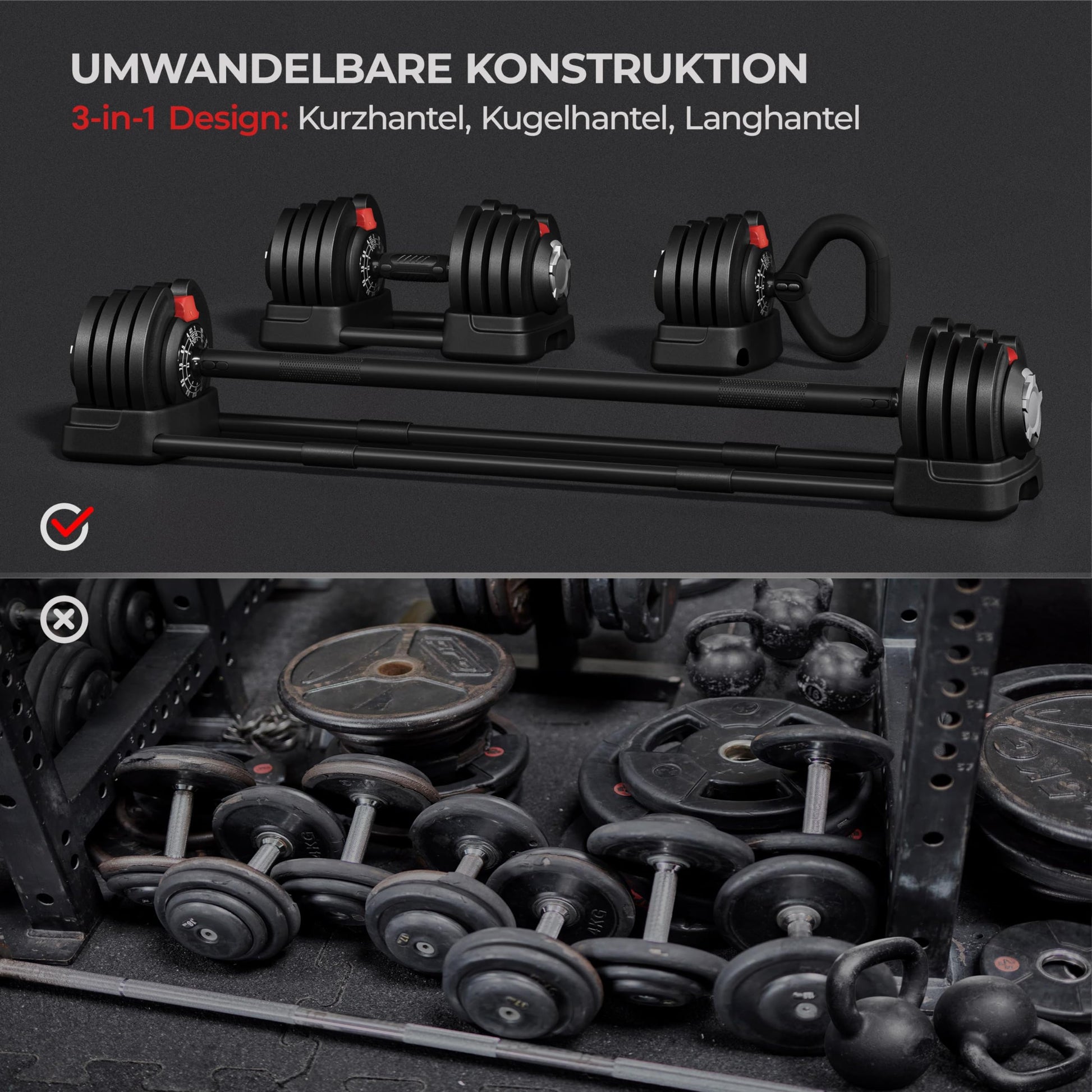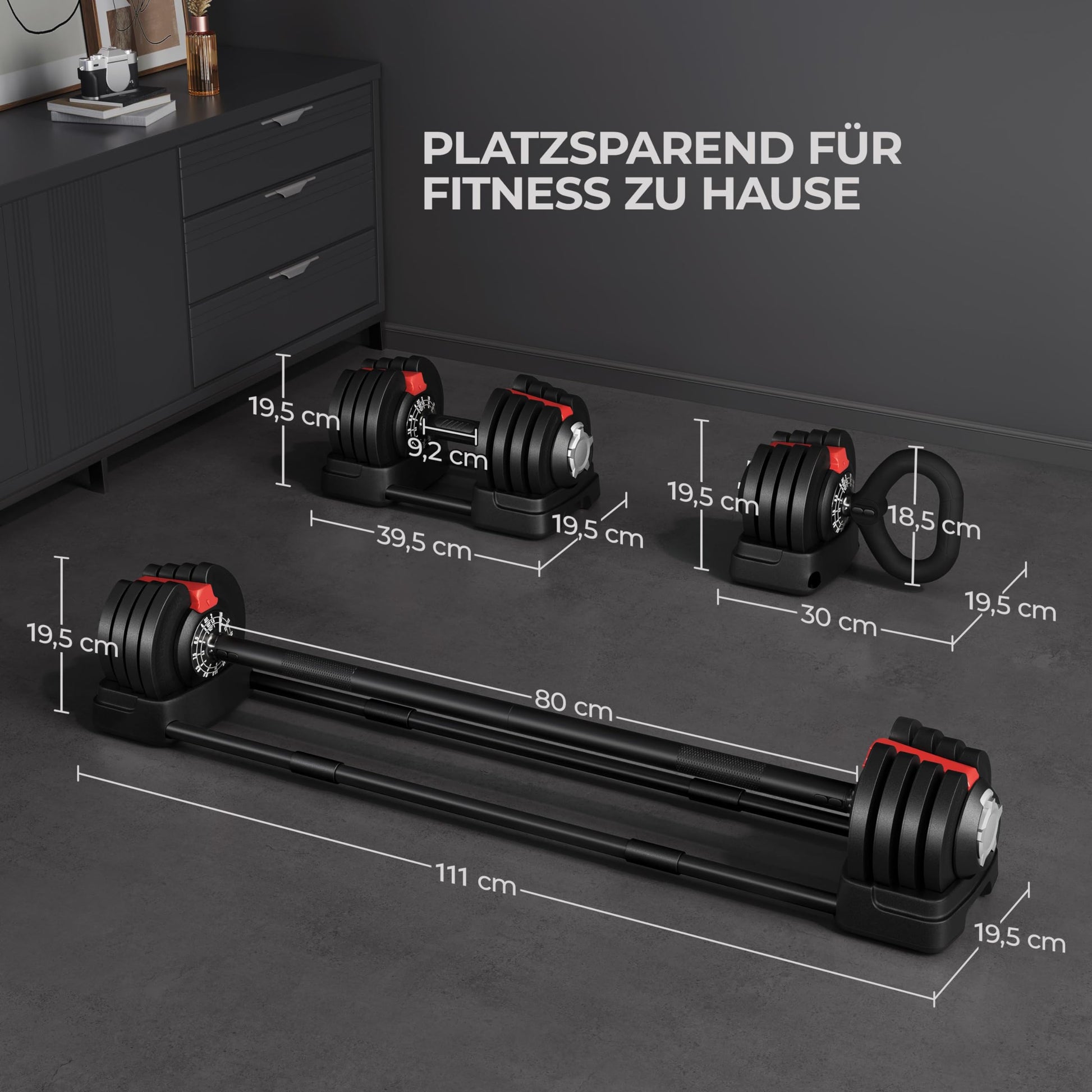 Yaheetech verstellbare Hanteln 18 kg / 24 kg / 40 kg Hantelset Gewichtsstufen Verstellbares Hantelset mit 3/2 Modi