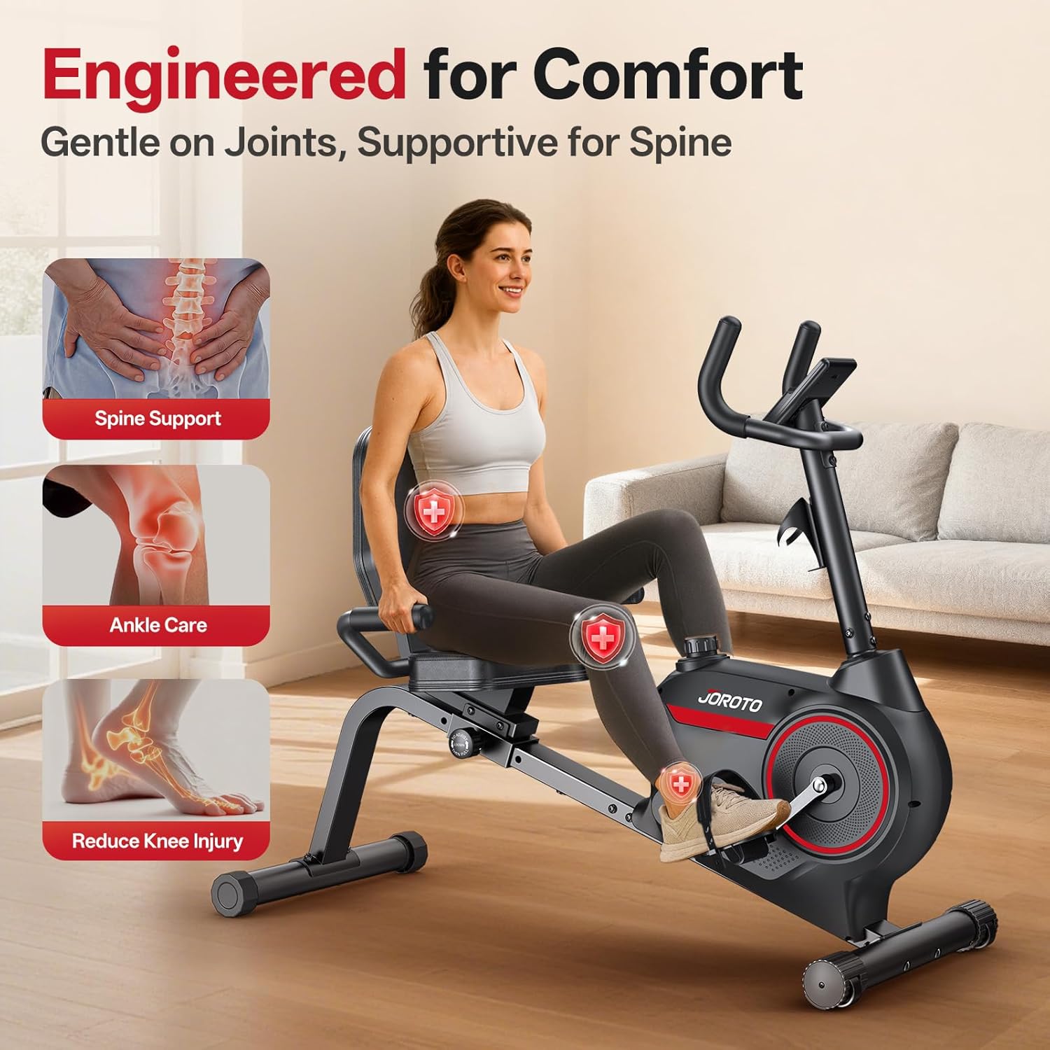 JOROTO JH30 Liegeergometer für Zuhause, Smart Bluetooth Magnetisches Liegefahrrad, Indoor Heimtrainer Ergometer bis 136KG Belastung, LCD Display, Verstellbarer Sitz für Cardio-Training