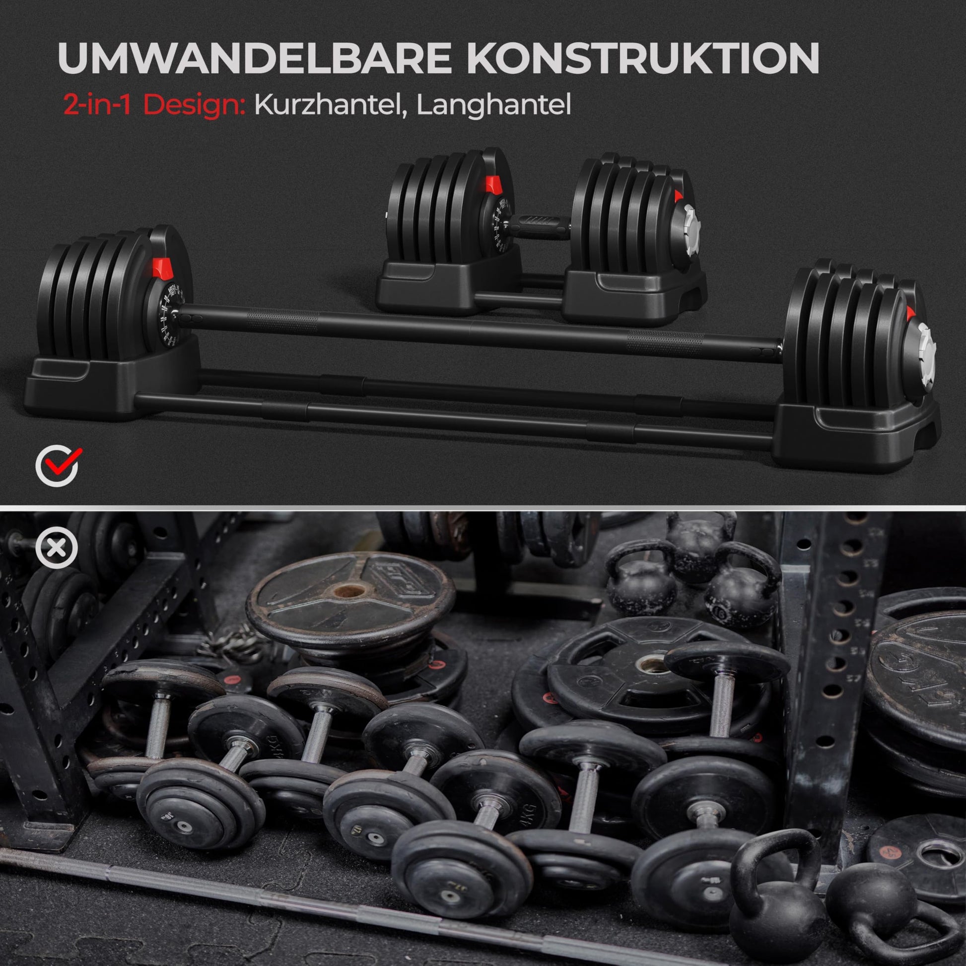Yaheetech verstellbare Hanteln 18 kg / 24 kg / 40 kg Hantelset Gewichtsstufen Verstellbares Hantelset mit 3/2 Modi
